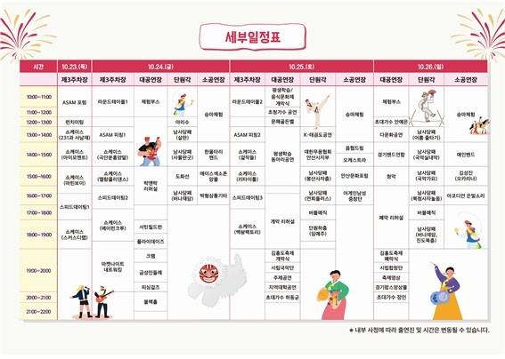 시민과 가족 단위 방문객들이 즐길 수 있는 남사당놀이, 전통공예 체험, 버블매직쇼, 다양한 국악·밴드·무용 공연 등 전통과 현대 문화 한마당이 열릴 예정이다.