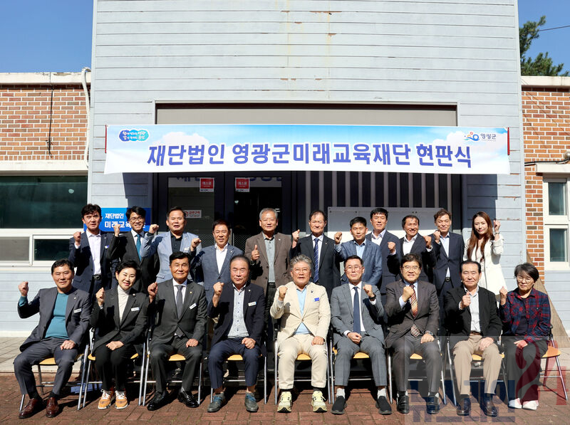 (재)영광군미래교육재단(이사장 장세일)이 지난 10월 22일 임시사무공간에서 현판식을 개최했다.