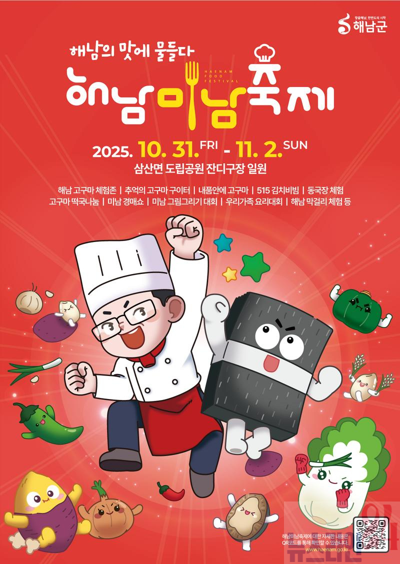 10월 31일부터 11월 2일까지 삼산면 두륜산 도립공원 일원에서 2025 해남미남(味南)축제가 열린다. 해남미남축제는 해남의 풍부한 농수특산물과 먹거리를 활용해 맛있는 해남,‘미남(味南)해남’의 맛과 멋을 알리는 행사로 매년 가을 개최되고 있다.