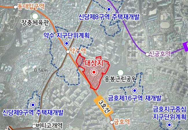사업 대상지는 신당동 349-200번지 일대 약 6만3천520㎡로, 지하철 3·6호선이 지나는 약수역과 인접해 있다. 해당 부지에는 지상 30층 규모의 공동주택 1,616세대가 조성될 예정이다.