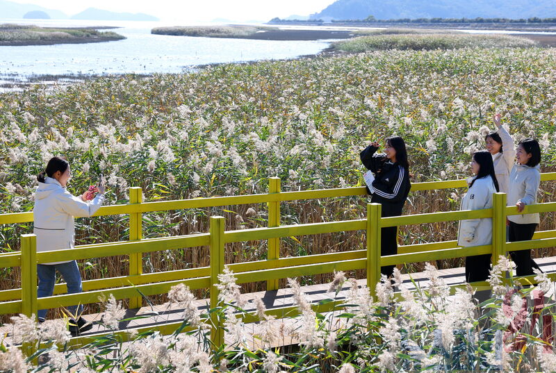 시원한 가을바람, 춤을 추는 갈대. 제10회 강진만 춤추는 갈대축제가 강진만생태공원에서 열리고 있는 가운데 지난 29일 축제장을 찾은 관광객들이 갈대밭을 거닐며 추억을 쌓고 있다.