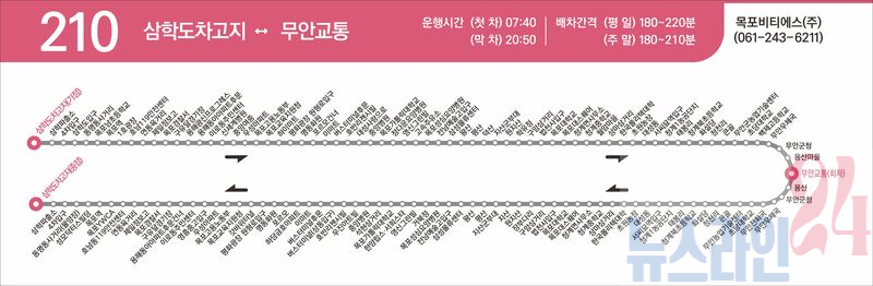 210번 : 목포역~버스터미널 구간을 백년대로로 우회하여, 평화광장, 목포대 학내 등을 경유, 무안읍, 목포대와 평화광장 연결성 강화