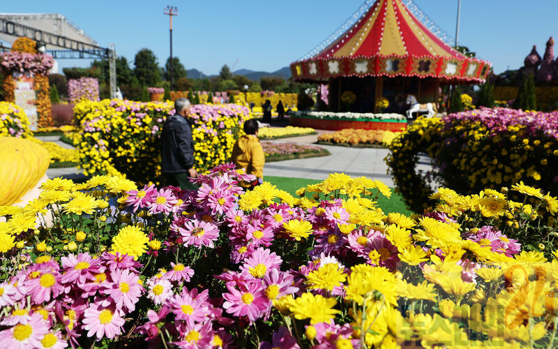 국화꽃이 만개한 중앙광장에는 수만 송이의 화단국과 분재국이 어우러져 장관을 이루며, 가족 단위 방문객과 연인, 친구들이 추억을 남길 수 있는 ‘인생샷 명소’로 큰 호응을 얻고 있다.