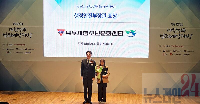 목포시청소년문화센터(센터장 이수진)는 지역사회 위기 청소년 선도와 범죄예방에 기여한 공로를 인정받아 지난 10월 28일 열린 ‘제10회 대한민국 범죄예방대상’시상식(경찰청·중앙일보·JTBC 공동 주관)에서 행정안전부장관상을 수상했다.