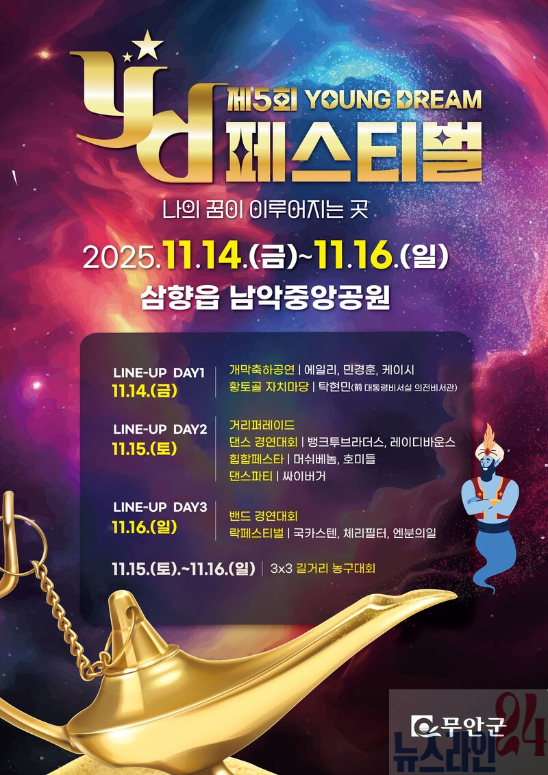 김산 군수는 “YD페스티벌은 청년이 중심이 되어 직접 만들어가는 무안의 대표 축제”라며, “젊은 세대가 마음껏 에너지를 발산하고, 각자의 꿈을 향해 나아갈 용기를 얻는 계기가 되길 바란다”고 전했다.
