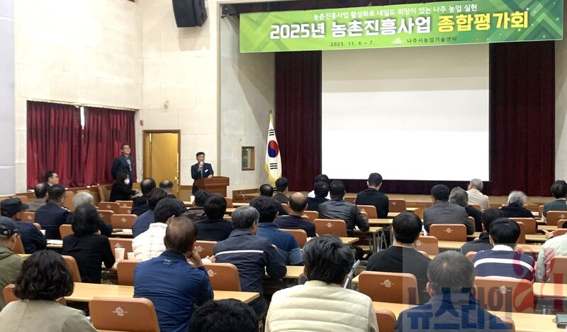 전라남도 나주시(시장 윤병태)가 올해 추진한 농촌진흥사업의 주요 성과를 공유하고 향후 발전 방향을 모색하기 위해 6일 농업기술센터 대강당에서 ‘2025년 농촌진흥사업 종합평가회’를 개최했다.