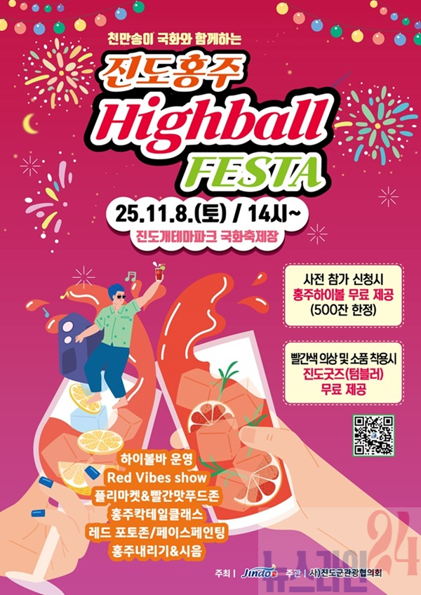 진도군이 천년의 전통을 자랑하는 명주(名酒) ‘진도홍주’를 현대적인 감각으로 재해석한 새로운 축제인 ‘진도홍주 하이볼 페스타’를 오는 11월 8일(토) 오후 2시에 진도개테마파크 국화축제장에서 개최한다.