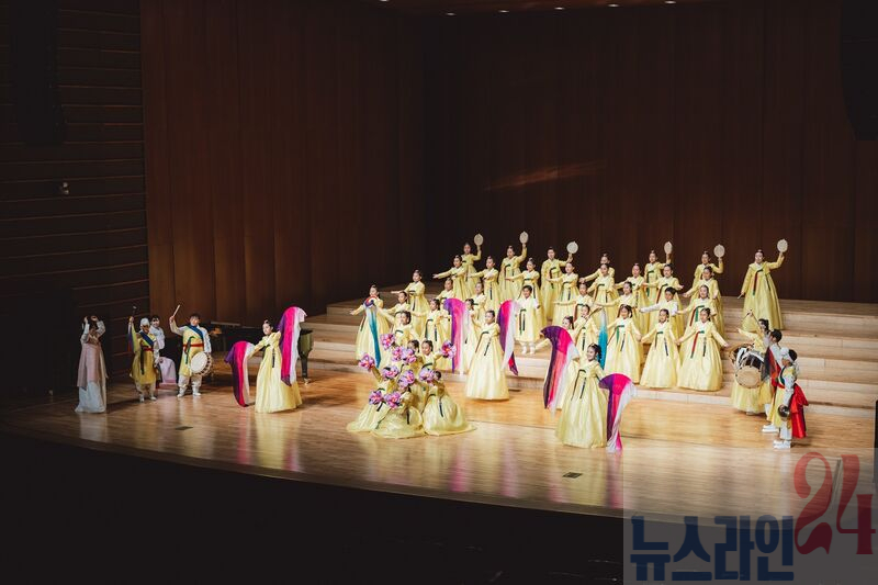 나주배를 상징하는 금빛 한복을 입은 단원들은 국악기와 어우러진 한국적 연출로 무대를 감동으로 물들였다.