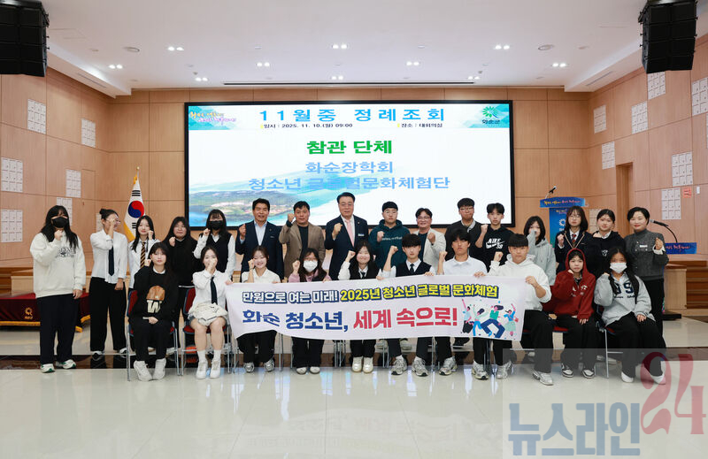 (재)화순장학회(이사장 구복규)는 11월 10일(월) 오전 9시 화순군청 대회의실에서 열린 정례조회에서 ‘만원으로 여는 미래, 2025년 청소년 글로벌 문화체험’ 참가 학생들의 연수 소감 발표 시간을 가졌다고 밝혔다.