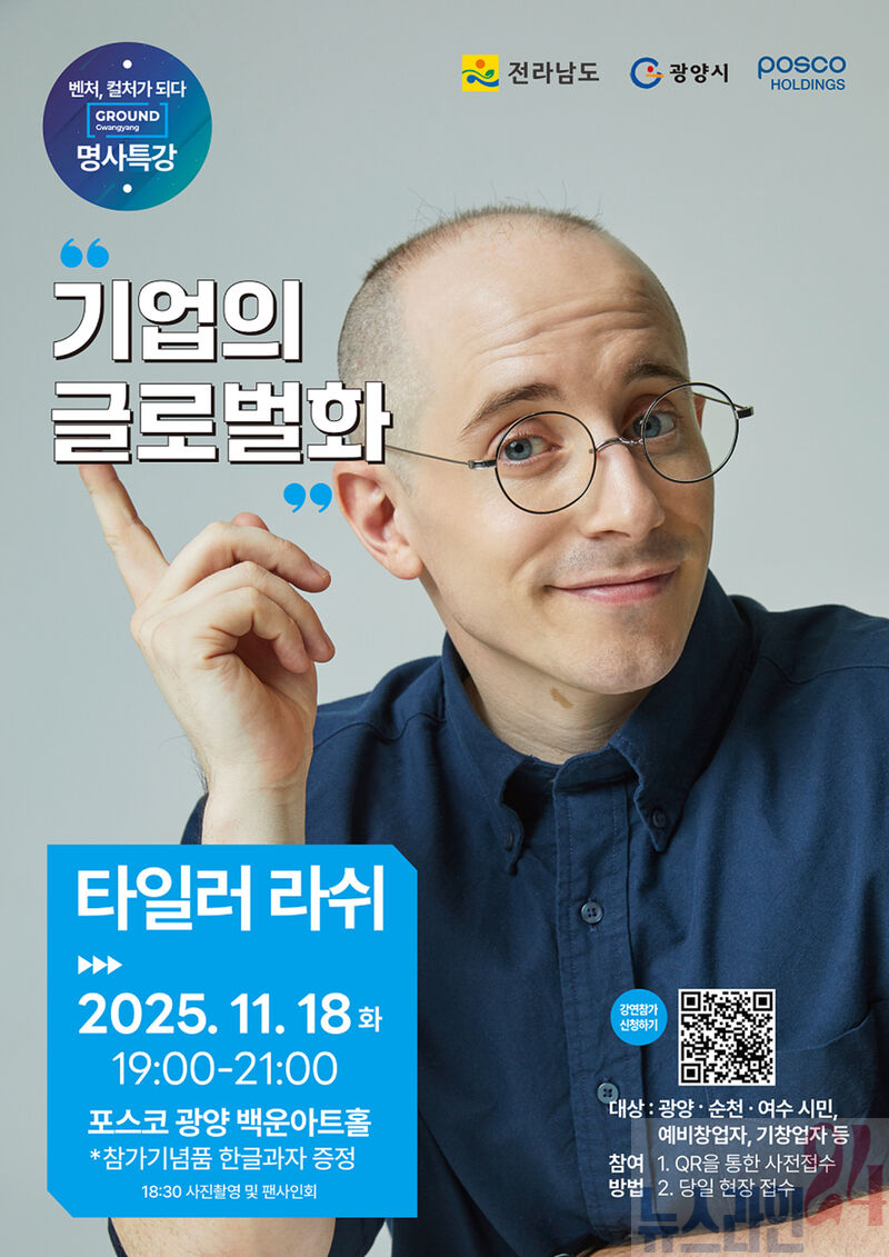광양시는 11월 18일(화) 오후 7시 백운아트홀에서 열리는 ‘2025년 제3회 광양 스타트업 콘서트’에 방송인 타일러 라쉬를 초청해 글로벌 특강을 진행한다고 밝혔다.