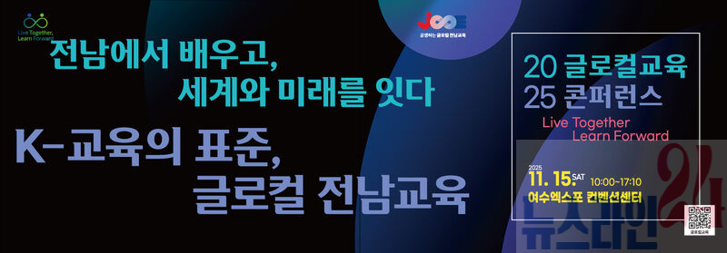 전라남도교육청(교육감 김대중)은 15일 여수 엑스포 컨벤션센터에서 ‘2025 글로컬교육 콘퍼런스’를 개최한다. 이번 행사는 ‘2024 대한민국 글로컬 미래교육 박람회’를 계승하며, 학교와 지역, 교육공동체가 함께 일군 공생의 가치를 나누는 ‘2025. 대한민국 글로컬 미래교육 작은박람회’의 첫 시작으로, 지역과 세계를 잇는 미래형 교육 모델을 모색하는 출발점이 될 전망이다.