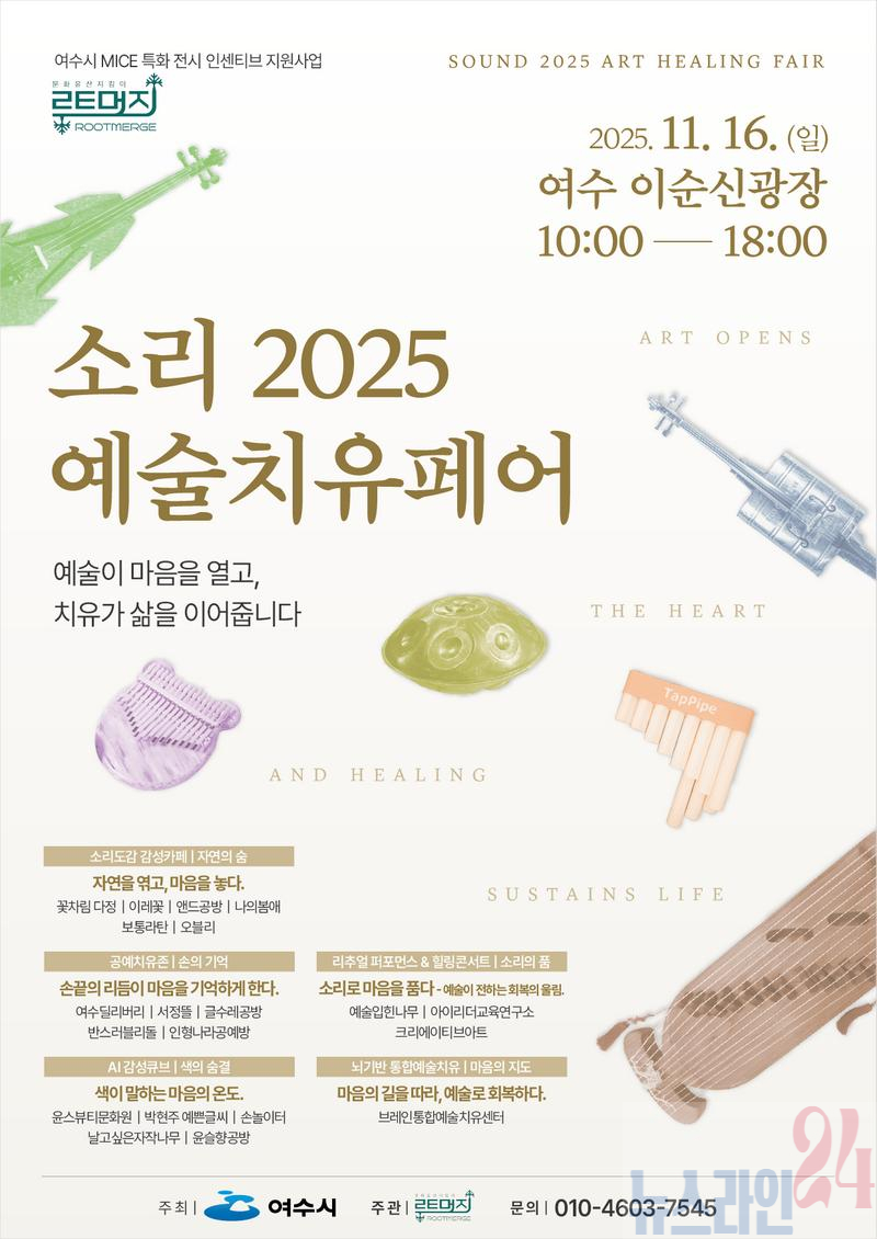 여수시(시장 정기명)는 오는 11월 16일 이순신광장에서 ‘소리 2025 예술치유페어’를 개최한다.