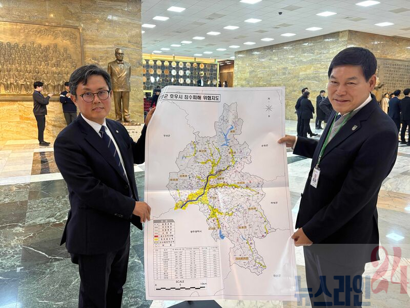 정춘생 의원 면담 국비 건의정 군수는 신정훈 행정안전위원회 위원장과 안도걸 의원에게 ▲하천 설계기준 개선 ▲가동보 전환 ▲퇴적토 재활용 규제 완화 ▲피해지도 제작 등 기후재난 대비 제도개선을 건의하며 “이는 특정 지자체가 아닌 전국적으로 필요한 과제”라고 강조했다.
