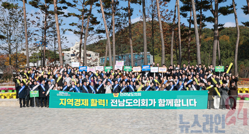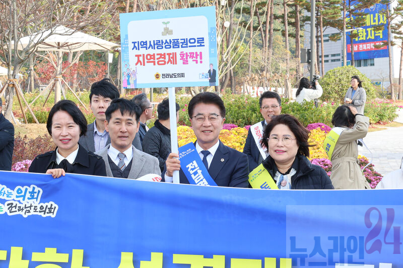 전라남도의회(의장 김태균)는 11월 17일 오전, 전남도청 앞 사거리에서 지역경제 활성화를 위한 가두캠페인을 진행했다.