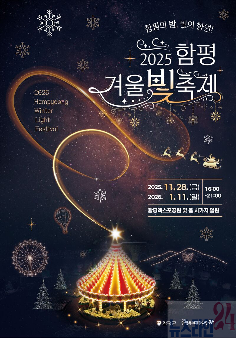 특히 올해 축제는 2025 대한민국 국향대전이 열렸던 축제장을 활용해 ▲이이남 작가의 대형 미디어아트 ‘빛으로 피어난 겨울, 함평의 인사’ 전시 ▲빛의 회전목마·미로정원, 천사 조형물 등 특색 있는 야간 경관조명 연출을 더해 빛과 예술이 결합된 ‘빛의 테마파크’를 선보일 예정이다.
