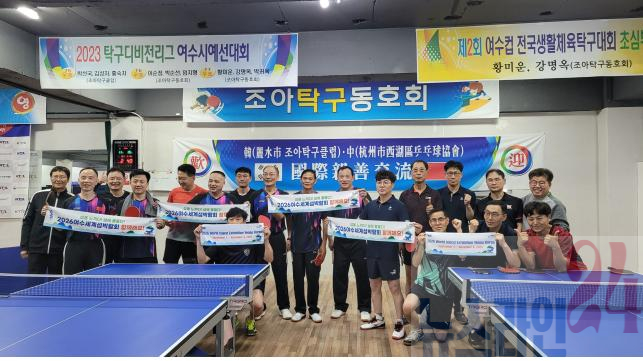 18일 동호회에 따르면, 이번 교류전은 지난 15일 여수 조아탁구장에서 항저우 탁구인 10명 등 30여 명이 참여한 가운데 치러졌다.