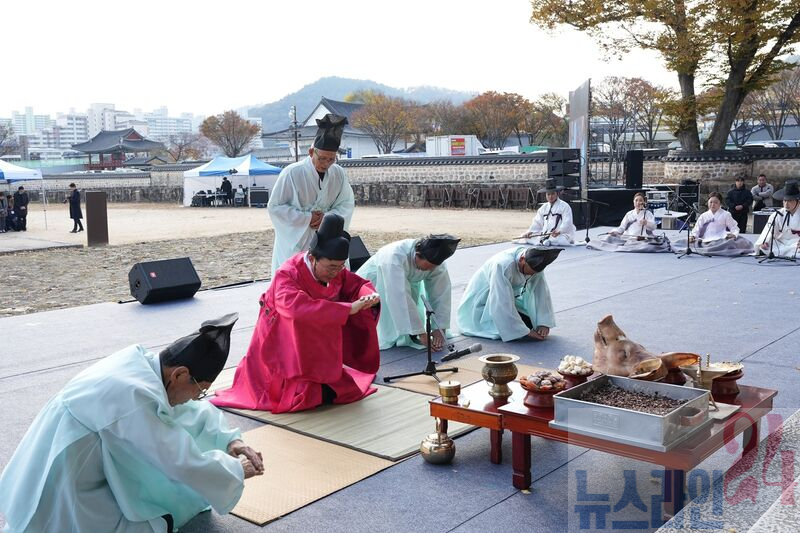 의례는 전통 고유례를 시작으로 금성관의 무사한 해체와 보수를 비는 안전기원 비나리, 복원의 완전성을 기원하는 축원무 순으로 진행했다.