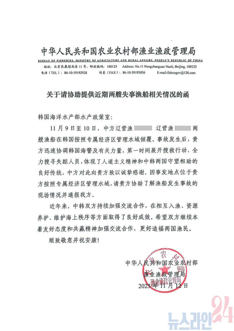 中 외교부, 서해해경 구조 활동에 진심어린 감사 표명 中, 주광주총영사관·농업농촌부·해경국 등 총 4차례 감사의 뜻 전해