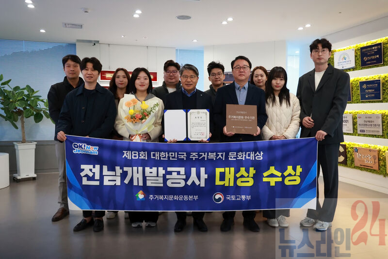 전남개발공사(사장 장충모)는 11월 20일 국회도서관 대강당에서 열린 ‘제8회 대한민국 주거복지문화대상’ 시상식에서 기관(단체) 부문 ‘대상’을 수상했다고 밝혔다.
