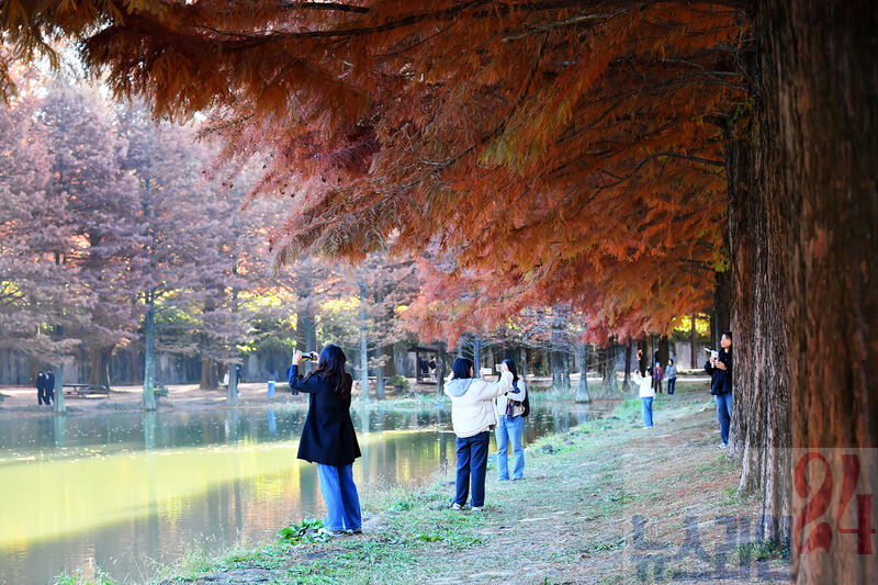 고요한 물 위에 반사된 숲의 색감까지 더해져 담양 특유의 늦가을 정취를 느끼려는 이들의 발걸음이 이어지고 있다.