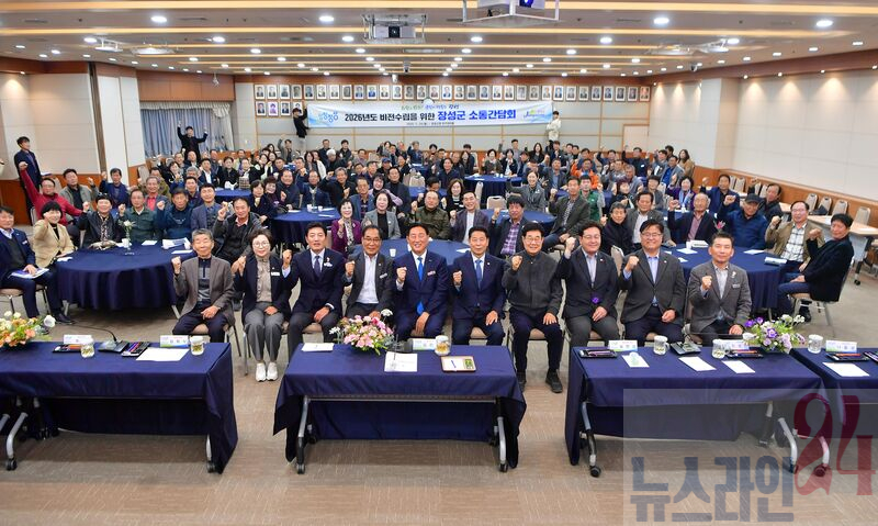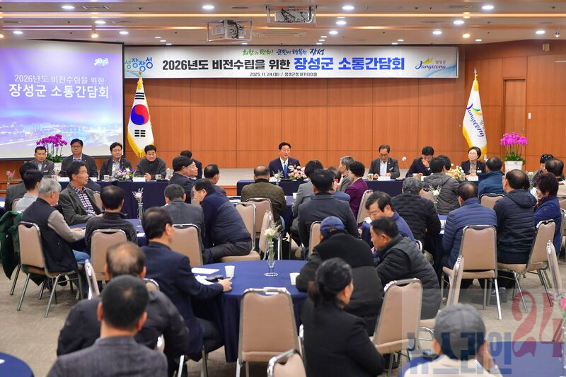 장성군이 24일 군청 아카데미홀에서 ‘2026년 비전 수립을 위한 소통간담회’를 열었다. 군민, 사회단체 관계자, 언론인과 도·군의원, 공무원 등 150여 명이 참석해 주요 군정 추진 사항에 대해 의견을 나눴다.
