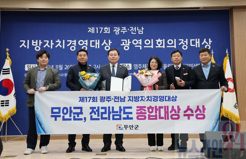 전남 무안군(군수 김산)이 26일 광주광역시 염주체육관 내 올림픽기념국민생활관 1층 세미나실에서 열린 제17회 광주·전남 지방자치경영대상에서 ‘종합대상’을 수상하며 종합행정 분야에서 전방위로 탁월한 성과를 인정받았다.