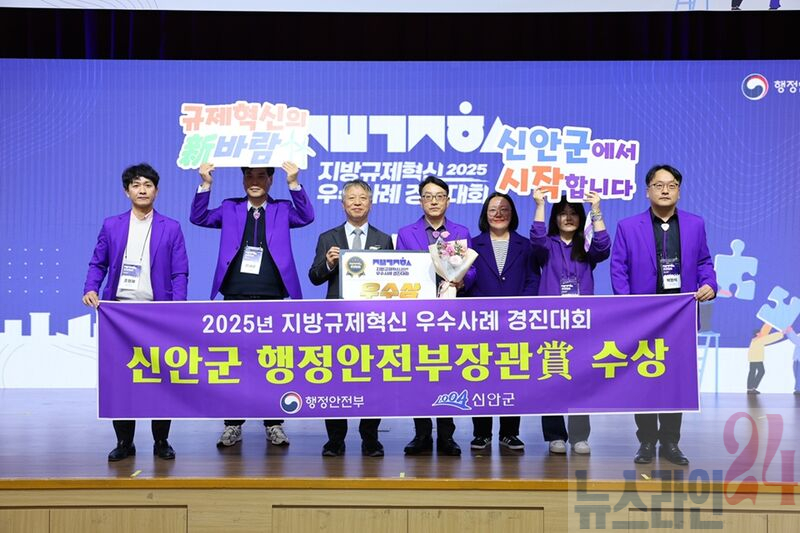 신안군(군수권한대행 김대인)이 지난 25일 세종컨벤션센터에서 열린, 행정안전부 주관 ‘2025년 규제혁신 우수사례 경진대회’에서 우수상(행정안전부장관상)을 수상했다.