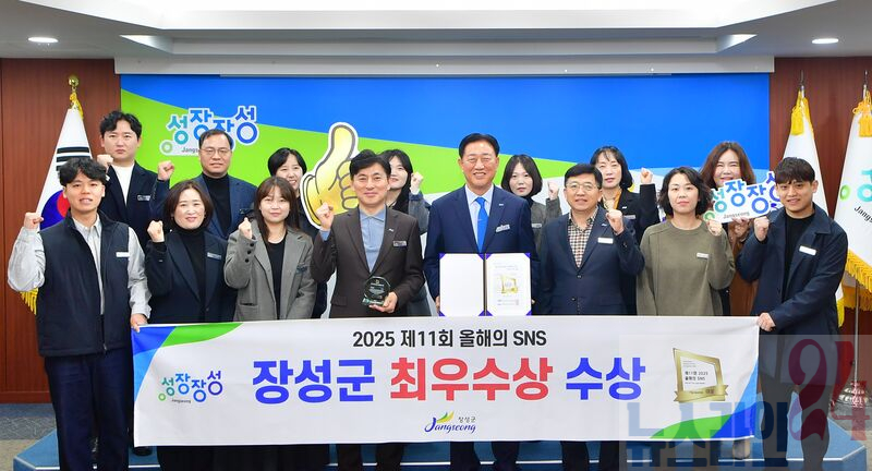 장성군이 26일 서울 ‘한국프레스센터’에서 열린 ‘제11회 2025 올해의 에스엔에스(SNS)’ 시상식에서 페이스북 부문 최우수상을 수상했다.