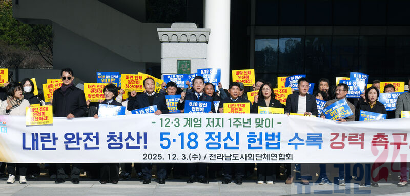 김영록 전라남도지사는 3일 12·3 불법 비상계엄 저지 1주년을 맞아 5·18 정신 헌법 전문 수록, 검찰·사법·언론 3대 개혁 완수, 농업의 공익적·다원적 가치와 ‘지방분권 국가’ 헌법에 천명 등 4대 개혁과제를 제시했다.