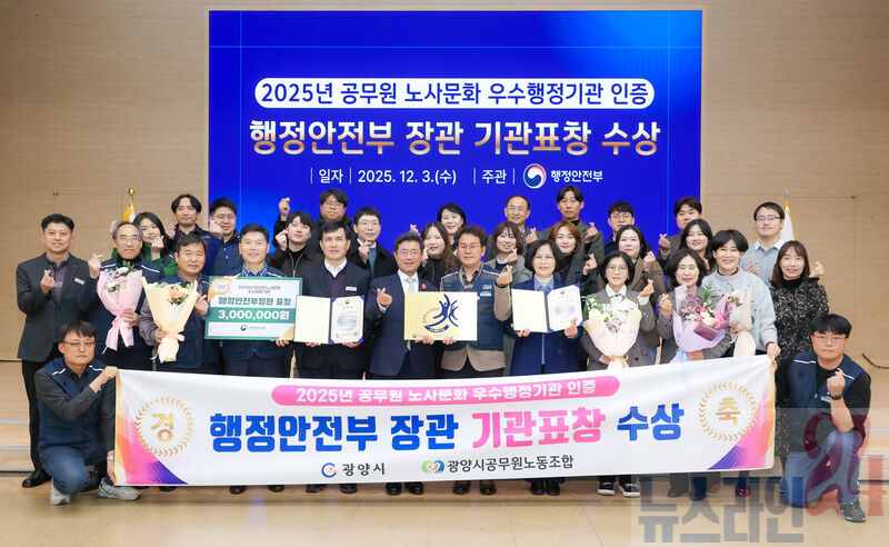 광양시가 행정안전부가 주관한 ‘2025년 공무원 노사문화 우수행정기관 인증제’ 심사에서 우수행정기관으로 선정돼 행정안전부장관 표창을 수상했다.