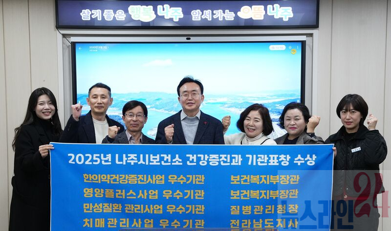 전라남도 나주시(시장 윤병태)는 2025년 한 해 동안 추진한 건강증진 정책의 전 분야에서 탁월한 성과를 인정받으며 영양, 한의약, 지역사회 건강증진, 정신건강, 치매관리 등 총 5개 기관표창을 잇달아 수상했다고 4일 밝혔다.