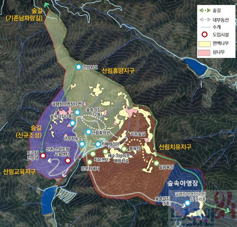 또한, 천등산 일대에 들어서는 ‘국립 다도해 산림치유원 조성’ 사업은 총사업비 1,002억 원을 전액 국비로 투입해 치유센터 및 치유숲길 등 산림복지단지를 조성하는 사업으로 광주, 전남, 경남을 아우르며 국립 최초 해안형 산림치유원으로 조성될 예정이다. 2026년 예산에는 예비타당성 조사 용역비 5억 원이 반영됐다.