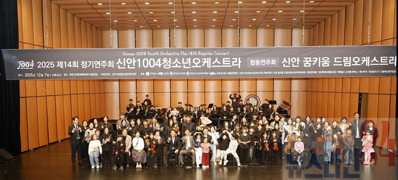 신안군 섬 지역 청소년들의 예술적 성장을 이끌어 온 ‘신안1004청소년오케스트라’와 ‘신안 꿈키움 드림오케스트라’가 지난 7일(일) 목포시민문화체육센터 대공연장에서 제14회 정기연주회 ‘천사들의 열네 번째 이야기’를 성공적으로 마무리했다.