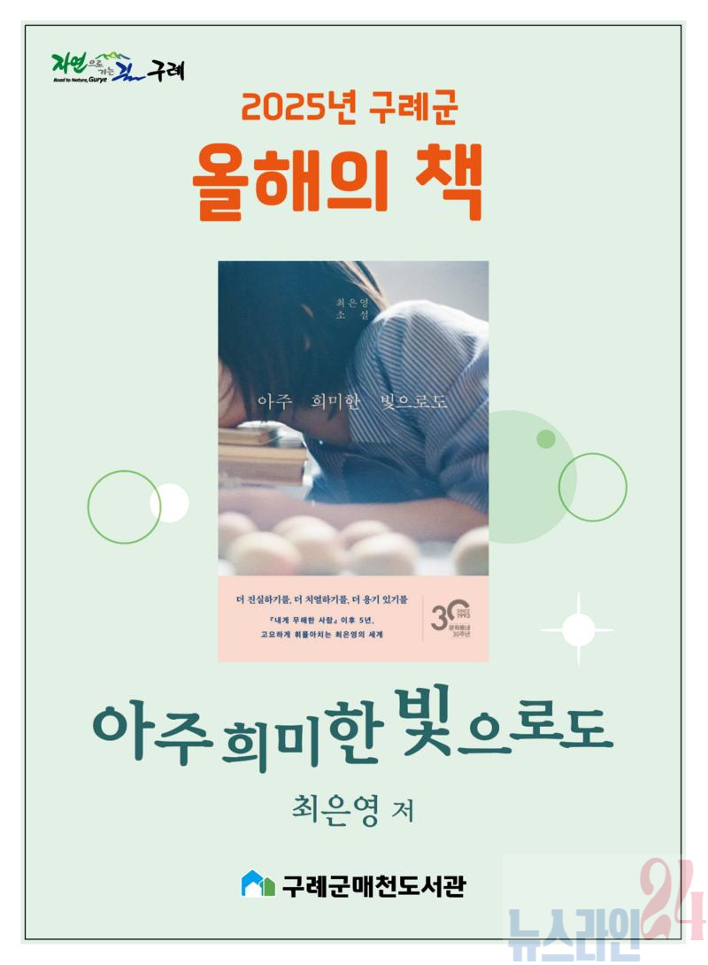 구례군매천도서관은 지난 12일 2025년 ‘구례 올해의 책’으로 최은영 작가의 『아주 희미한 빛으로도』를 선정했다고 밝혔다.