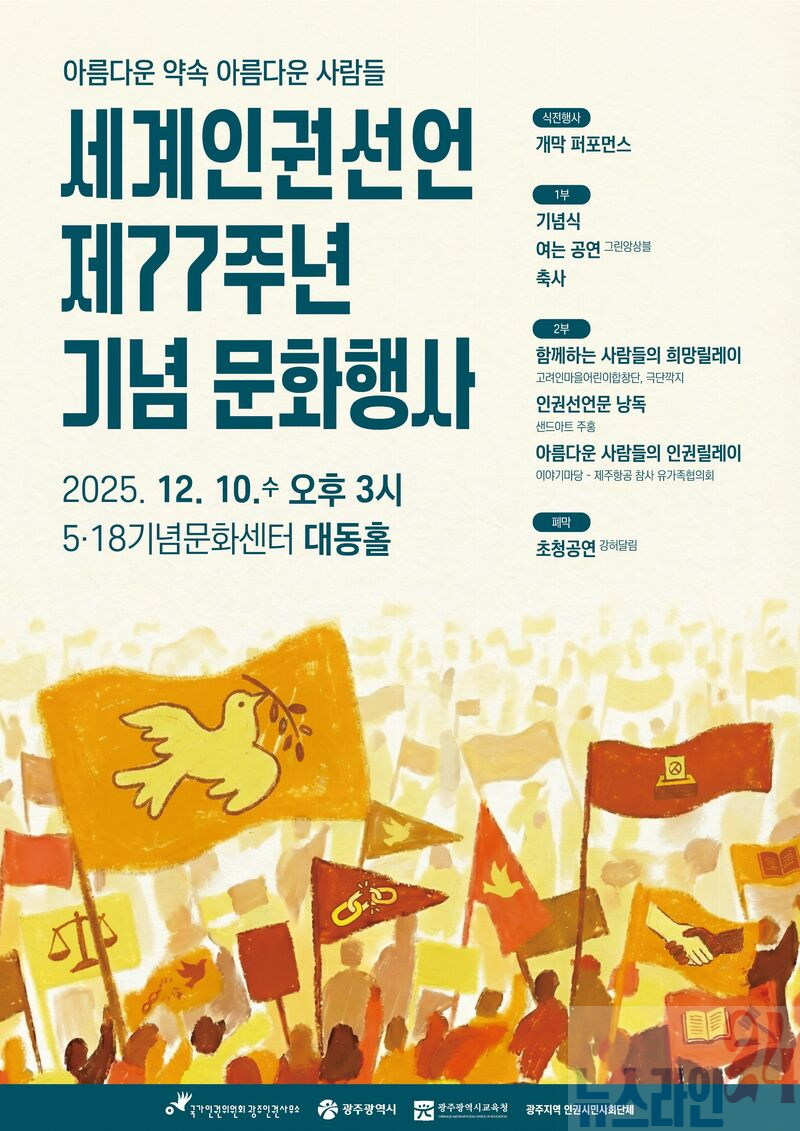 광주시교육청(교육감 이정선)이 세계인권선언 77주년을 맞아 광주광역시, 국가인권위원회 광주인권사무소와 ‘세계인권선언 기념주간’을 운영한다.