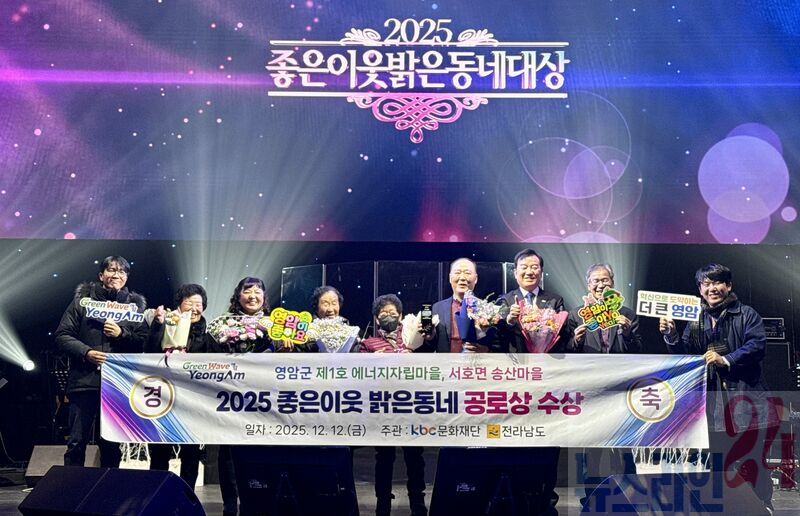 영암군 송산마을이 12일 광주광역시 조선대학교 해오름관에서 열린 ‘2025 좋은이웃 밝은동네’ 시상식에서 공로상을 받았다.