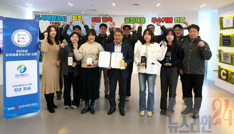 전남개발공사(사장 장충모)가 도시개발공사 가운데 최초로 ‘5년 연속 공정채용 우수기관’ 인증을 획득했다.