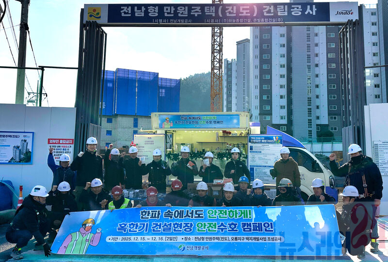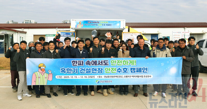 전남개발공사는 겨울철 급격한 한파로 인한 저체온증 등 한랭질환 발생을 예방하고 건설현장 근로자의 건강을 보호하기 위해 ‘한파 속에서도 안전하게! 혹한기 건설현장 안전수호 캠페인’을 실시했다고 17일 밝혔다.