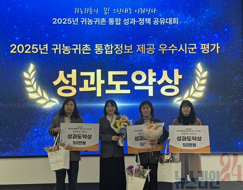 농림축산식품부 주관 귀농귀촌 통합정보 제공 우수 시군 평가에서는 귀농귀촌 관련 지원사업과 교육·체험 프로그램 정보를 체계적으로 제공해 예비 귀농귀촌인의 정보 접근성과 정책 활용도를 높인 점이 긍정적인 평가를 받으며 성과도약상을 수상했다.
