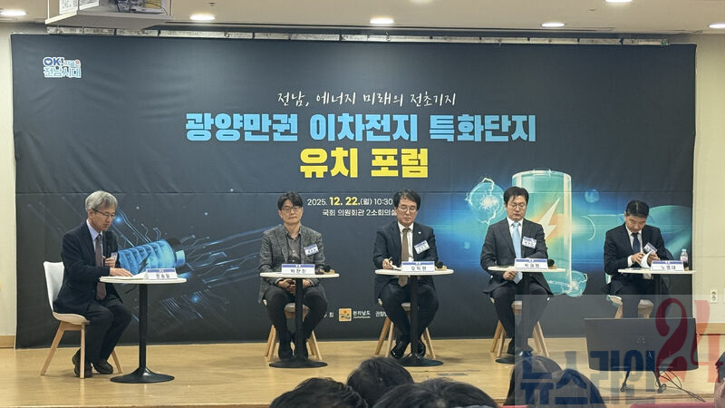 광양시는 지난 22일 국회의원회관 제2소회의실에서 ‘광양만권 이차전지 특화단지 유치 포럼’을 개최하고, 광양만권을 대한민국 K-배터리 공급망의 핵심 거점으로 육성하기 위한 전략을 논의했다고 밝혔다.