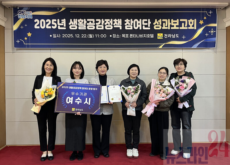 여수시가 2025년 생활공감정책 참여단 평가에서 전남도 시·군 가운데 1위를 차지해 도지사 기관 표창을 수상했다. 이와 함께 참여단 대표는 행정안전부 장관 표창을, 업무 담당 공무원은 도지사 표창을 수상하며 3관왕을 달성하는 의미 있는 성과를 거뒀다.