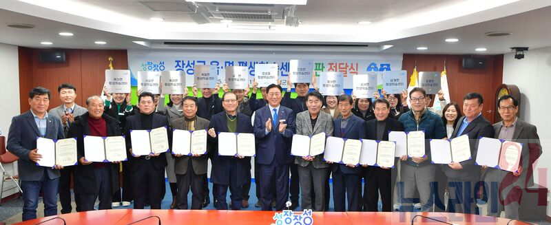 장성군이 지난 24일 군청 상황실에서 11개 읍면 주민자치위원장과 읍면장이 참석한 가운데 ‘읍면 평생학습센터’ 지정서 및 현판 전달식을 가졌다.