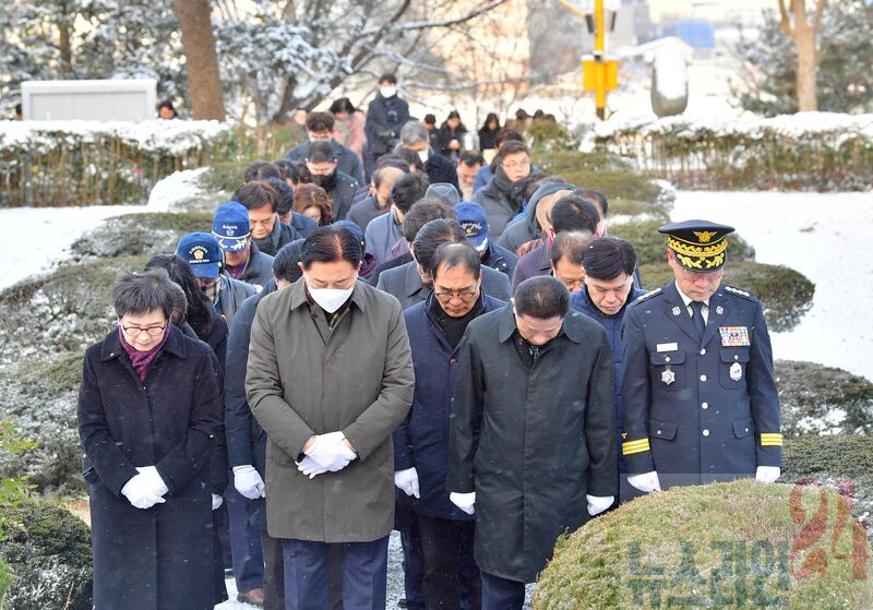 1월 2일 충혼탑 참배장성군이 2일 오전 군청 아카데미홀에서 시무식을 갖고, 한 해 업무의 시작을 알렸다. 김한종 장성군수와 부서장, 공무원 등 500여 명이 참석했다.