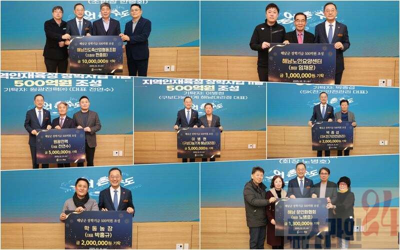 이와 관련해 해남군은 지난 1231일 올해 마지막 장학사업기금 기탁식을 진행했다이번 기탁식에는 지역사회와 미래 세대를 위한 따뜻한 나눔에 동참한 여러 단체와 개인들이 참석해 의미를 더했다.