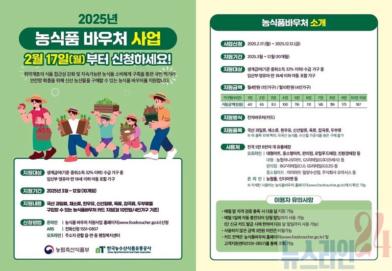나주시(시장 윤병태)는 오는 2월 17일부터 생계급여 수급가구를 대상으로 ‘2025년 농식품 바우처 지원사업’ 신청을 읍면동 행정복지센터에서 받는다고 14일 밝혔다.