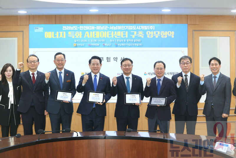 해남군에 한전KDN‘에너지 특화 AI데이터센터’들어선다 해남군-한전KDN-전라남도-서남해안기업도시개발 업무협약 체결 에너지 데이터 수집·관리 민간 공유, AI-에너지 융복합 신산업 개발
