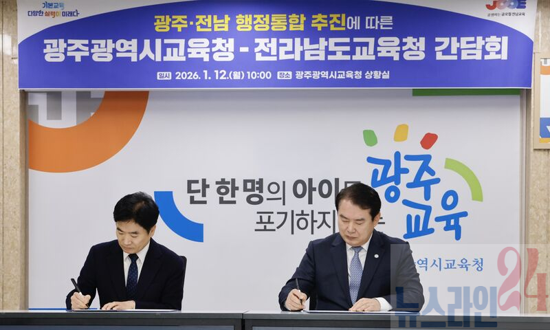 광주광역시교육청(교육감 이정선)과 전라남도교육청(교육감 김대중)12일 광주·전남 행정 통합에 찬성하고 협력을 다짐하는 공동발표문을 채택했다.