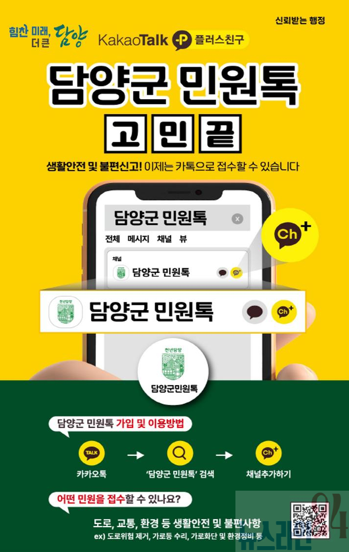 담양군, 생활 불편․안전 문제는 ‘담양군 민원톡’으로 해결하세요! 카카오톡으로 도로 파손·가로등 고장·불법 폐기물 등 생활민원 간편 접수