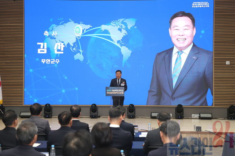 김산 무안군수는 포럼에 참석하여 ‘목포대 글로컬대학 30’ 사업 선정에 대한 축하를 전하고 무안군과 목포대의 협력 계획을 설명하며 지역발전을 위한 대학과의 상생 방안을 모색했다.