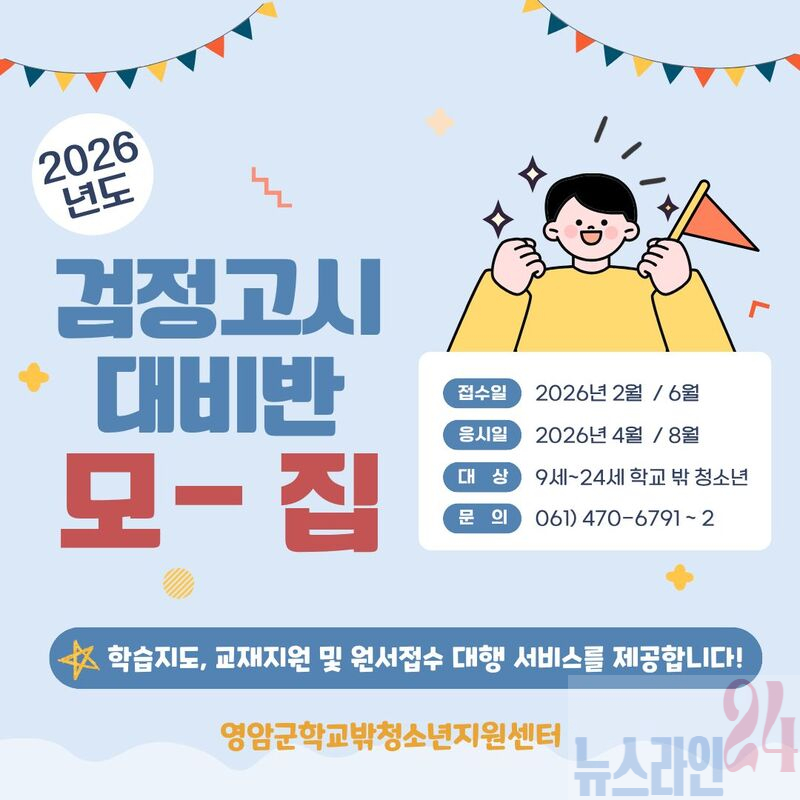 영암군학교밖청소년지원센터가 2월부터 운영하는 검정고시 대비반 참여 청소년을 상시 모집한다.